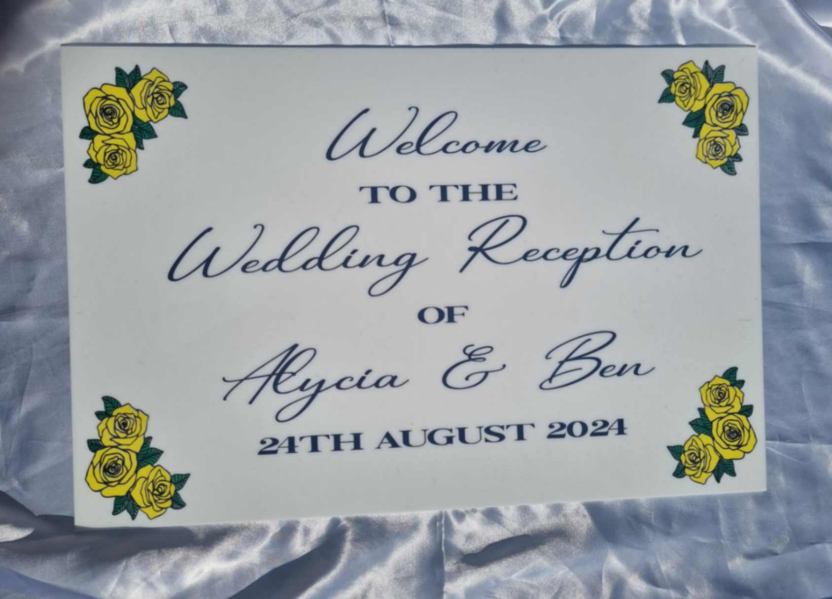 Greet your guests as they arrive at your venue with these welcome signs. They are made from a white acrylic and are approx A2 size. Beautiful and stylish Welcome signs for your special occasion. These signs can be customised in any way you need and would serve a practical purpose so guests are aware of the order of the day, seating plan or even directions.
